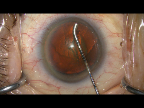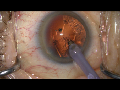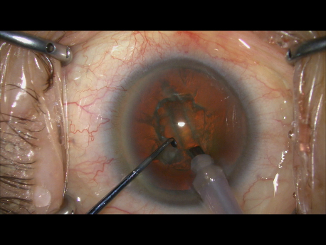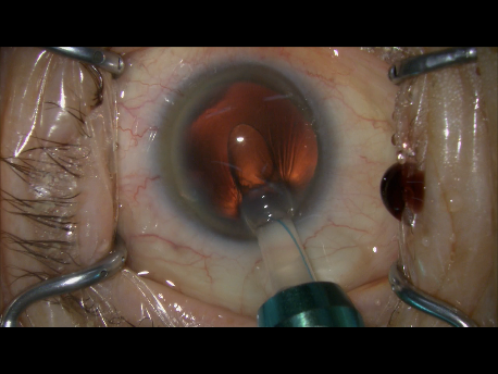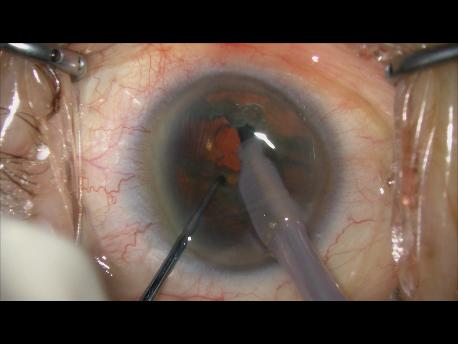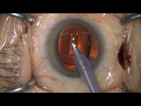 レンズの周りの部分にある皮質という濁りを吸っていきます。これで、カプセルの中は、きれいになりました。